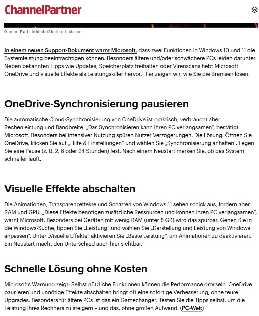 PS. Microsoft gibt jetzt Empfehlungen, wie ein Computer konfiguriert werden sollte, damit er effektiv läuft, so zumindest die Meldung im Channel (Link). Diese Handlungsempfehlung erhalten Sie von mir als Dienstleistung seit 20 Jahren. Ich freue mich, daß Microsoft meine Arbeit nun bestätigt und bedanke mich dafür.